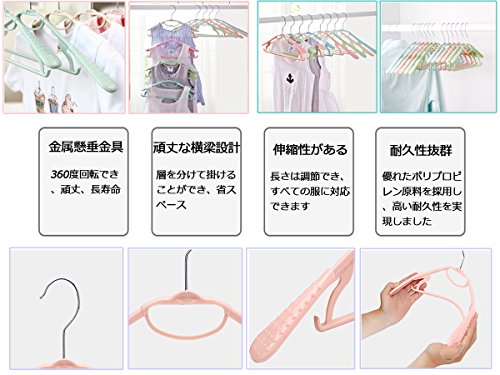 - セット数:20本 /本 材質:ポリプロピレン、高品質素材で、耐久性に自信がある。新生児からキッズまで衣類の大きさに合わせ伸縮するため、長く使用する事ができるハンガーです。