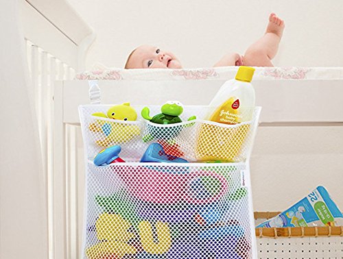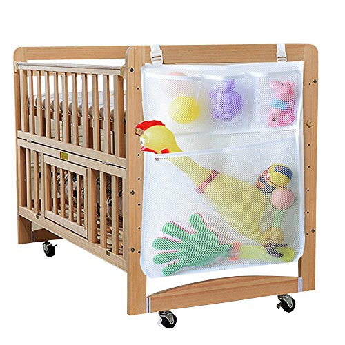 ベビーベッド サイド ポケット オモチャ収納袋 お風呂ハンモク 多用途 子供玩具 3つのポケット付きメッシュバッグ
