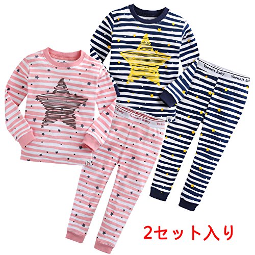 2セット入り ベビー パジャマ 12ヶ月-9歳キッズ子供 春秋冬 長袖パジャマ ルームウエア 寝間着 上下2点セット 綿100% 90-130cm (XXL, 2セット入り)