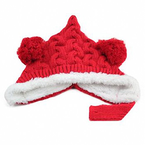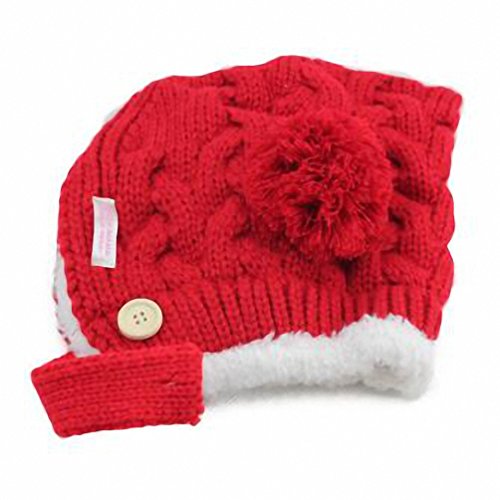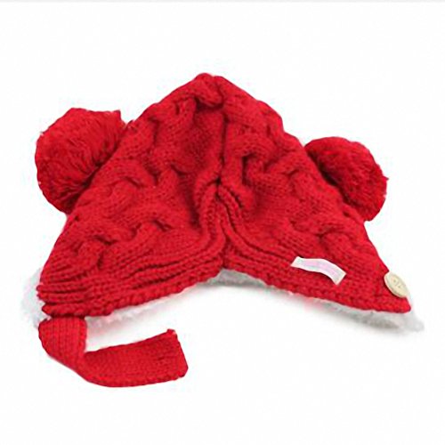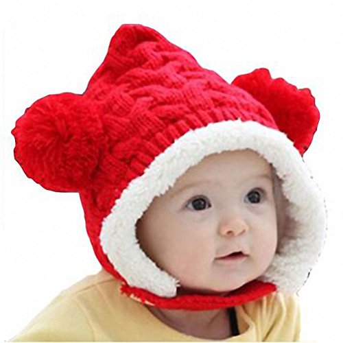 ベビー ダブルボンボン とんがり ニットキャップ 子供 冬 帽子 色選べる (赤い)