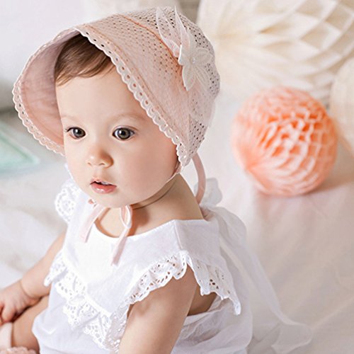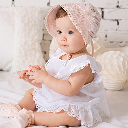 Alabarベビーガールズ中空レースプリンセス帽子ボンネット帽子aq25 カラー: ピンク