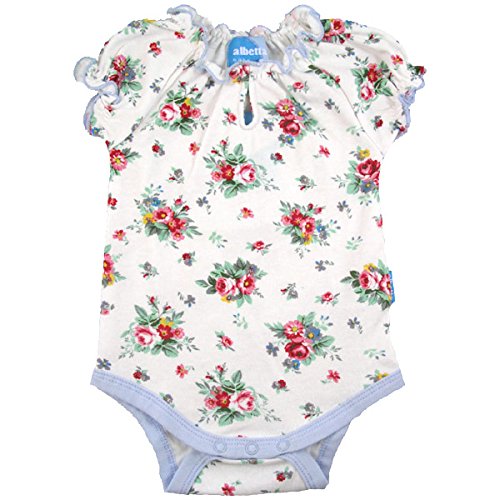 イギリスのベビー服ブランドAlbetta(アルベッタ)のレトロな花柄の半袖ボディスーツです。ガーリーなデザインで女の子にオススメ♪ 肌触りの良いコットン100%で、洗濯機40℃で水洗いできます。 股下にはスナップボタン付きで、おむつの交換も簡単! Albettaならではの可愛らしいデザインで、出産祝いにもオススメです。 ※Albettaはイギリスサイズを基準としている為、日本の同サイズ表記よりやや大きめになります。