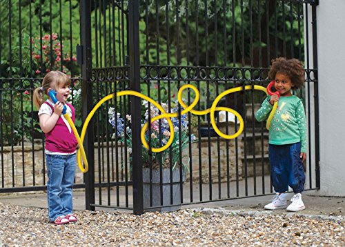 "Hello Can you hear me?" Make some long distance calls indoors and outdoors Incredible sound Set comes with with 3.3 yards (3m) of flexible tubing and 2 handsets in Red and Blue. For ages 3 years and up.