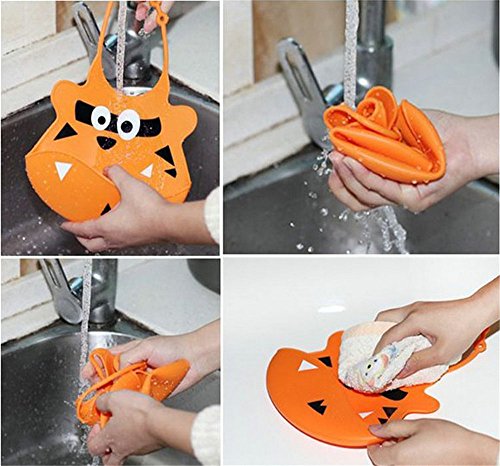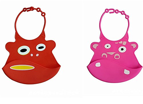 お食事 防水 くるくるエプロン ソフト スタイ シリコンバケツビブ 2枚セット(レッドモンキー/ピンクカバ)