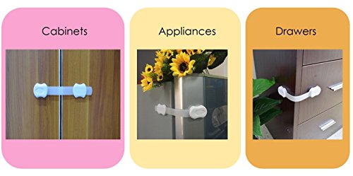 - PROTECT YOUR CHILD FROM HARM: When your baby starts taking the first steps, you know it's time to make your home a safe environment. Child proof your house in minutes. These safety locks secure cabinets, drawers, wardrobes, cupboards, appliances, doors, fridges, toilet cover, windows, stoves, dishwashers, microwave ovens, trash can and many others. Create peace of mind for yourself and safety for your child.