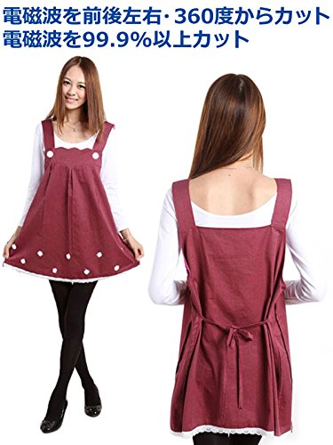 【Alice in Wonder forest】 電磁波防止 電磁波対策 電磁波カット マタニティ 妊婦 マタニティウェア 妊婦服 マイクロクロス付き OA エプロン 電磁波防止服 【Smile Earth3-5】 (XL レッド)<電磁波防止エプロンについて>