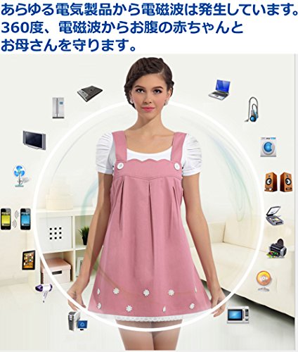 【Alice in Wonder forest】電磁波防止 電磁波カット マタニティウェア 妊婦 OA エプロン ワンピース Aライン フリーサイズ (ネイビー)