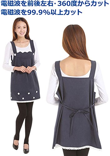 【Alice in Wonder forest】 電磁波防止 電磁波対策 電磁波カット マタニティ 妊婦 マタニティウェア 妊婦服 マイクロクロス付き OA エプロン 電磁波防止服 【Smile Earth3-7】 (XL,ネイビー)<電磁波防止エプロンについて>