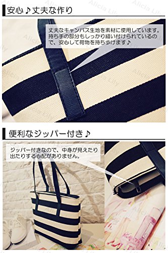 - お洒落で可愛いボーダー柄のキャンバストートバッグ、タブレットや小物も入りお出かけなど気軽に持ち歩けるサイズ。