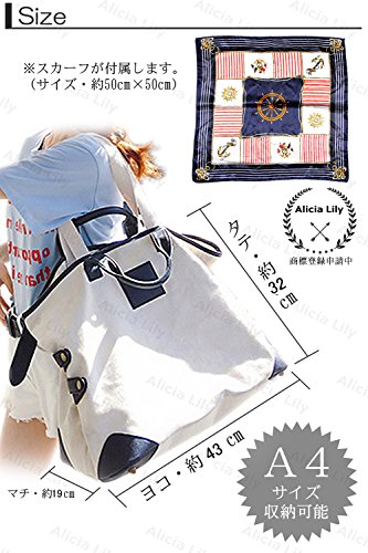 - 【サイズ】バッグのサイズ: タテ約32cmxヨコ約43cmxマチ約19cm 【メイン素材】帆布 【カラー】ホワイト 【付属品】スカーフ(約50cm×50cm)