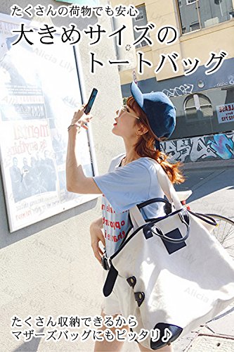Alicia Lily(アリシア リリー)大容量 大人 カジュアル キャンバス トートバッグ / お洒落 で 大きめ バッグ / シンプル マザーズバッグ ・ 可愛い ショルダーバッグ
