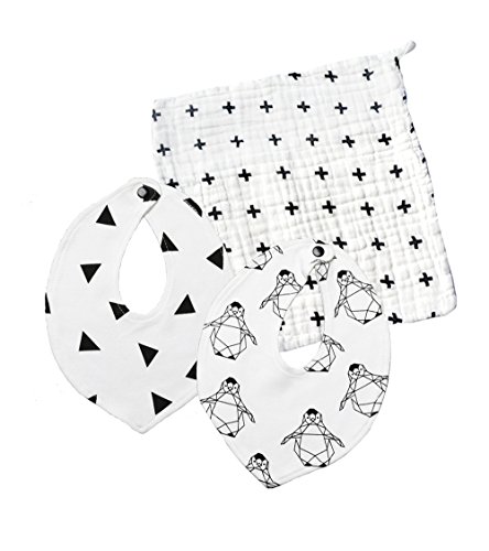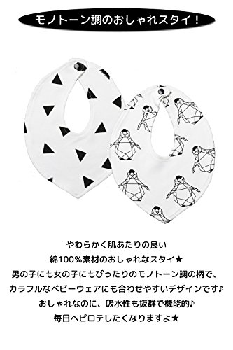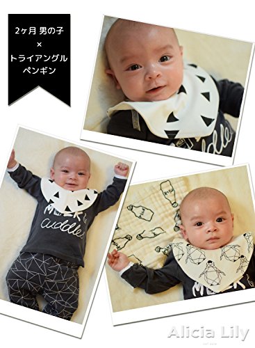【Lilie】 柔らかい コットン 100% スタイ 2枚 セット 厚手 ガーゼ タオル 付き 新生児 赤ちゃん 出産祝い に オススメ 可愛い 人気 の 北欧 デザイン (トライアングル×ペンギン)