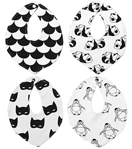 - 安心の綿100%、モノトーンでモダンな柄がとってもお洒落なスタイ・ビブ4枚セット。4枚セットなので交代で洗濯でき、毎日使用することができます。