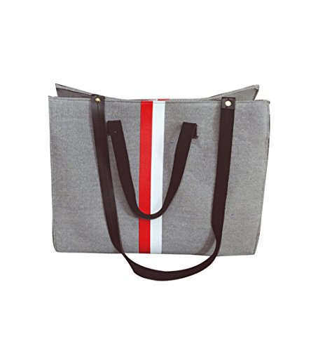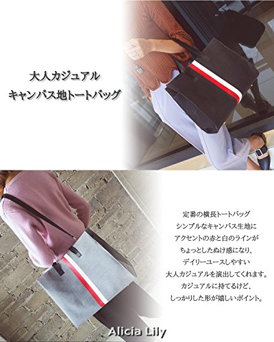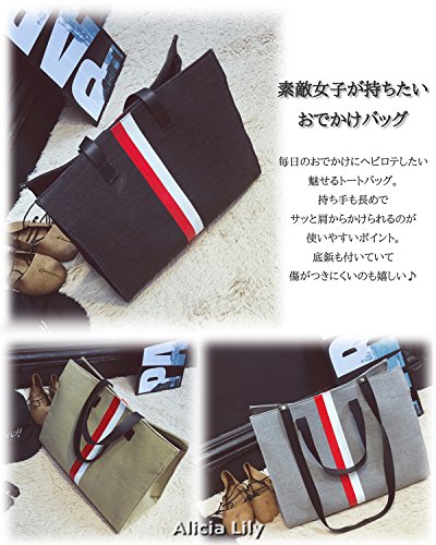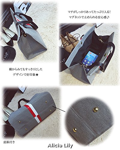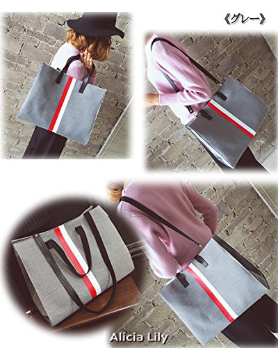 " ライン 入り ショルダー トート バッグ " マザー バッグ ママ レディース 通勤 通学 おしゃれ 2 way キャンバス (グレー)