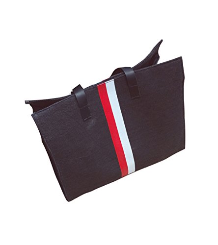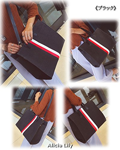 " ライン 入り ショルダー トート バッグ " マザー バッグ ママ レディース 通勤 通学 おしゃれ 2 way キャンバス (ブラック)