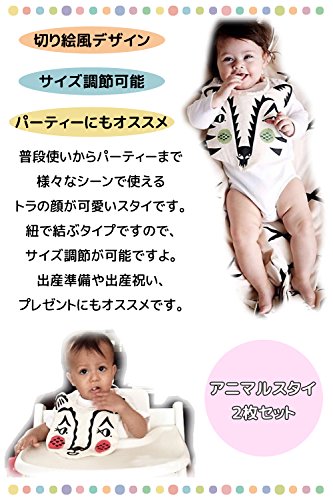 アニマル スタイ 2枚 セット よだれかけ ベビー 赤ちゃん 新生児 出産準備 イベント 誕生日 パーティー トラ 切り絵 風 可愛い コットン おしゃれ