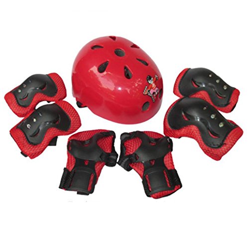 7PC幼児ヘルメット+プロテクターセット 子ども 用 キッズ 幼児 Aliciga 可愛い自転車ヘルメット 軽量 サイクリングヘルメット 調整可能 (レッド)
