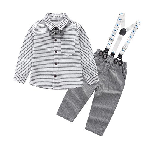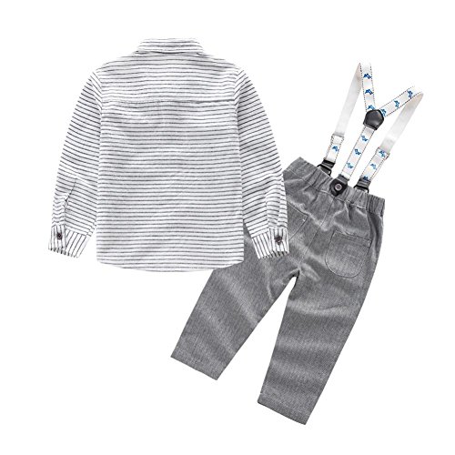 Aliciga ベビー ボーイズ 長袖 フォーマル スーツ 男の子 横縞 シャツ + サロペット 上下セット 子供服 七五三 結婚式 発表会 受験 七五三 卒園式 卒業式 入学式 結婚式 入園式 演奏会 (80, グレー)