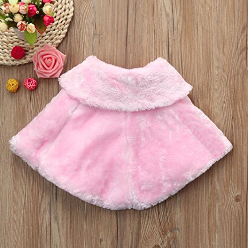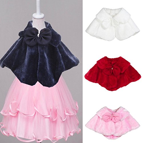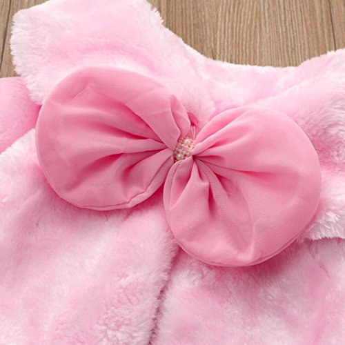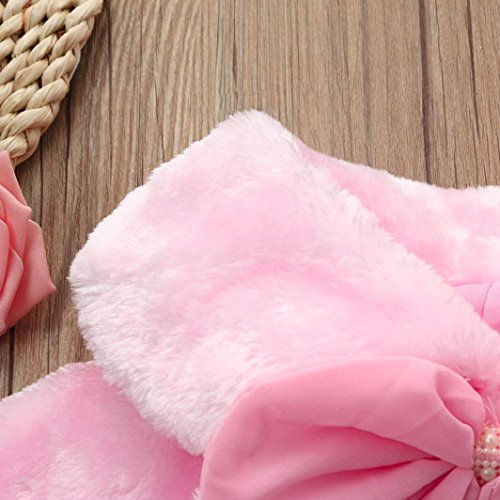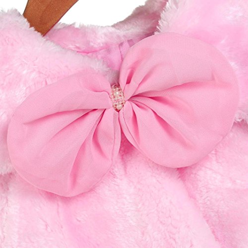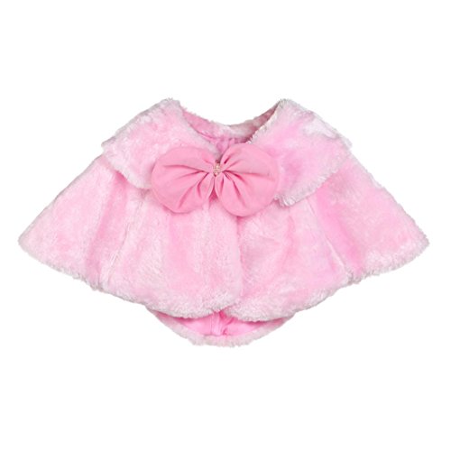 Aliciga 女の子用ボレロ ポンチョ キッズ ジュニア 子供 リボン ファー ケープ 無地 ふわふわ 蝶結び ショール フォーマル 卒業式 入学式 卒園式 結婚式 発表会 七五三 かわいい 子供ドレス 保温 冷房 防寒対策 クローク (ピンク, S)