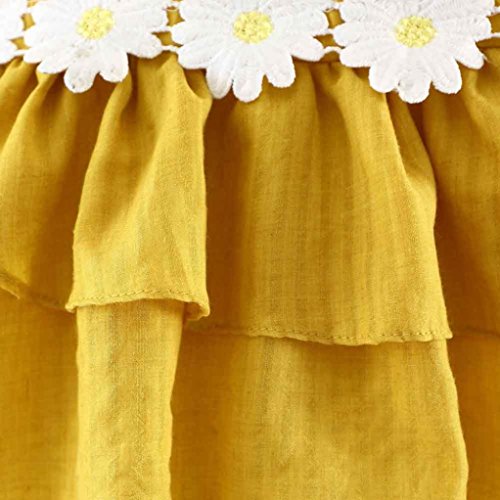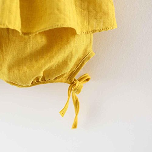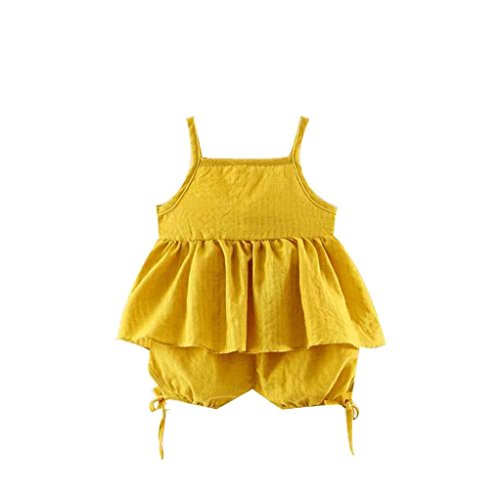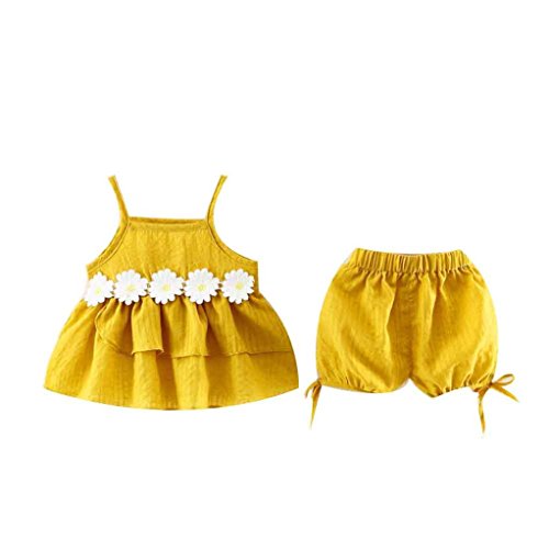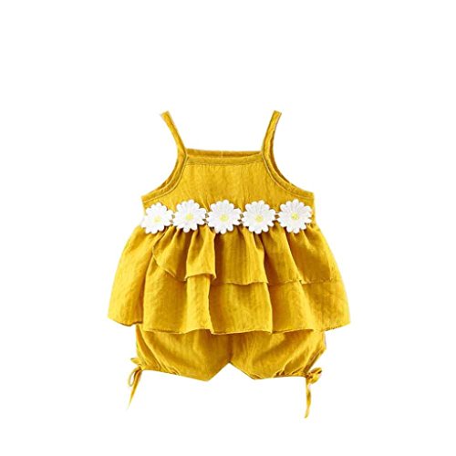 Aliciga 子供服 女の子 無地 タンクトップ ❀ Tシャツ 花の飾り タンクトップ+パンツ 上下セット レイヤード スカラップ ニッカボッカ リボン かわいい 夏 コットン 通気性 (6(12M), イエロー)