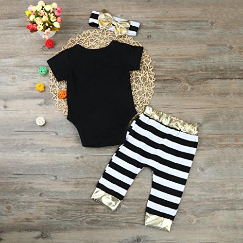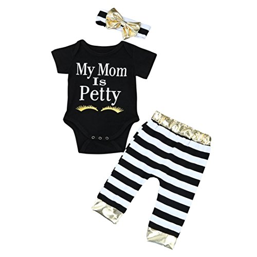 Aliciga 子供服 女の子 ロンパース レターロンパー 蝶結び my mom is pretty プリント OネックTシャツ+ロングパンツ+ヘッドバンド 上下セット 衣装セット リボン かわいい (70, ブラック)