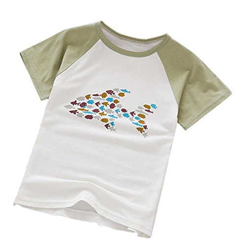 Aliciga 子供服 女の子 男の子 Tシャツ カートゥーン 魚 自転車 キリン プリント Oネック コットン 半袖 ルース かわいい 春夏 ショートトップ ベビー服 (130, グリーン)