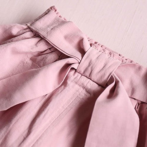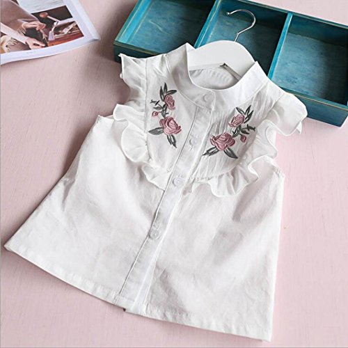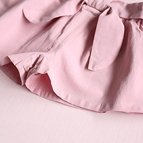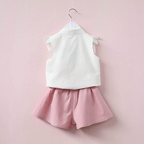 Aliciga 子供服 女の子 ノースリーブ 花柄 刺繍 フリル コットン ボタン シャツ ショートパンツ リボン かわいいシャツ+ショートパンツ 上下セット 甘い おしゃれ 春夏 人気 ファッション (90, ピンク)