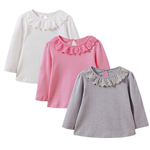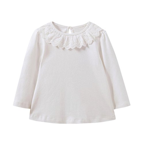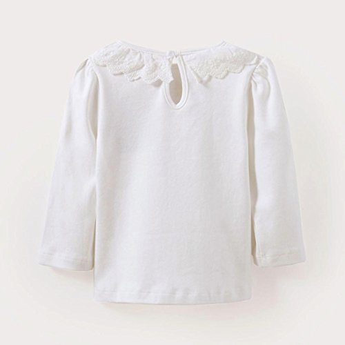 Aliciga 無地 長袖 Tシャツ レース スプライス 春 秋 キッズ 女の子 コットンブレンド 柔らか 長袖カットソー Oネックシャツ 子供服 柔らかい ベビー 保温 冷房 防寒対策 ゆったり ボトムシャツ 普段着 部屋着 キャンディーカラー インナーシャツ 可愛い お洒落 (98, ホワイト)