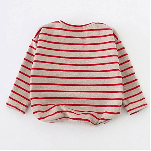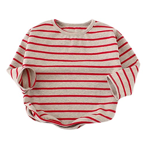 Aliciga 春 秋 キッズ Tシャツ 長袖 男の子 女の子 ボーダー 柔らか 混合綿 Oネック 横縞 カットソー シャツ 子供服 柔らかい ベビー 保温 冷房 防寒対策 ボトムシャツ 普段着 部屋着 キャンディーカラー お出かけ カジュアル (レッド, 98)