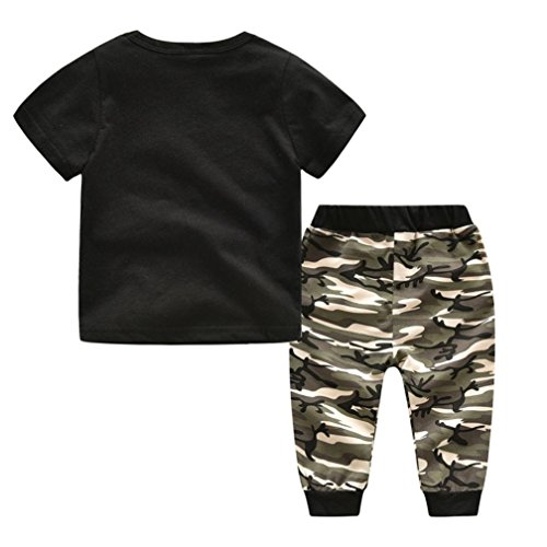 Aliciga 子供服 セットアップ 男の子 半袖 Tシャツ + ロングパンツ 二点セット ベビー服 MINI BOSS 迷彩柄 カッコイイ ファッション 人気 ダンス衣装 スポーツ 保育園 普段着 部屋着 運動会 イベント (100, ブラック)