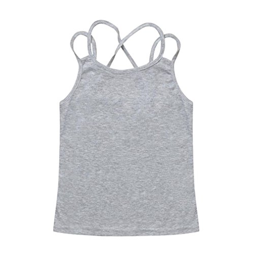 Aliciga タンクトップ 二重 肩紐 女の子 無地 バックレス キャミソール ボトムシャツ 春 夏 ベスト 子供服 普段着 部屋着 通気性 カジュアル お嬢系 可愛い オシャレ 通園 通学 ファッション 3-7歳 (100, グレー)