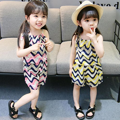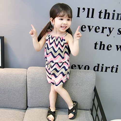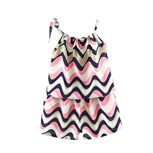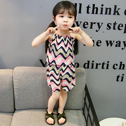 Aliciga 子供服 女の子 キャミソール ベスト + ショートパンツ 2点セット ベビー服 波 ボーダー プリント 新生児 肌着 かわいい 夏 カジュアル ゆったり スポーツ ファッション 人気 通園 通学 0~3歳 (80, ピンク)