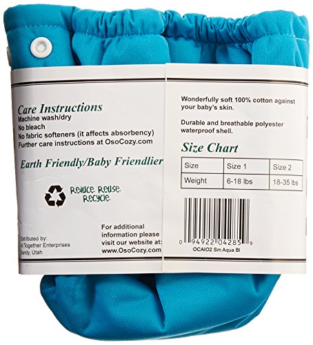 Size Small fits 6 to 18 pound;Same cotton material that has been used in our trusted Osocozy prefolds for decades;Manufactured in the USA by stay at home moms and grand moms;Available with five outer cover color options (white, pink, aqua, deep purple and light green)
