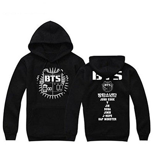 BTS防弾少年団ブラックパーカーセータープルオーバー( BTSキャップ、XL )