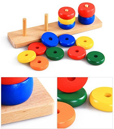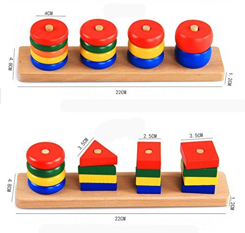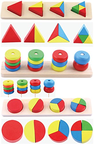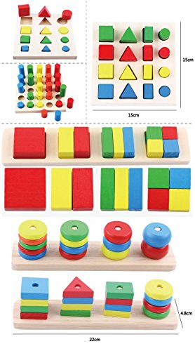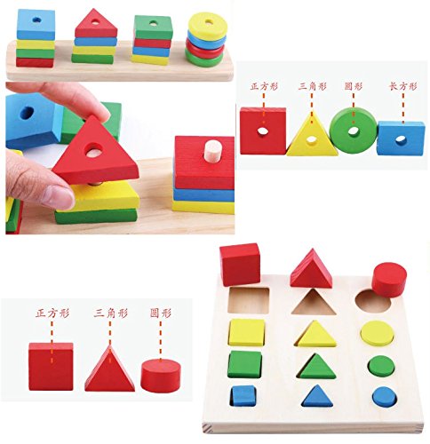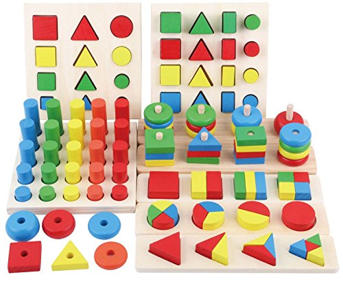 - 木のおもちゃ 知育玩具 バラエティー 8点セット!形合わせ はめこみ パズル 幾何学認知 棒さし タワー 8点入り。