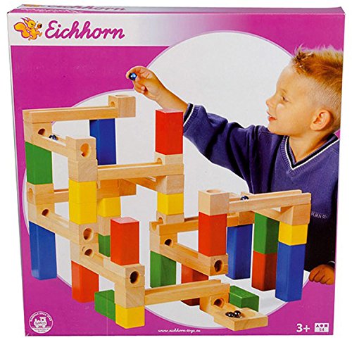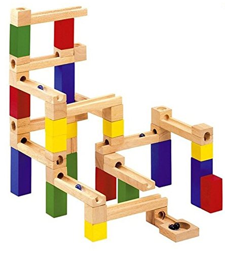 - 考えることが楽しくなる!夢中で遊べる知育玩具。平面に溝があるタイプ、中央に穴が開いているものなど8種類のブロックを使って立体迷路を作り、スタート地点からゴール地点までビー玉を転がして遊ぶおもちゃです。ビー玉がゴールまで滑らかに転がるように、想像力を働かし、計算して積み木を組み立てて遊びます。一緒に転がる方法を試行錯誤し、考えてコースを組み立てる。組み立て途中で積み木がドミノのように崩れることや、ビー玉が途中で止まってしまったりも楽しさの一つ。何度もトライ・失敗を重ねて完成させる。ビー玉がスタートからゴールまで転がったら、思わず「おーっ!」と声をあげたくなるほどの達成感!お子さんだけでなく大人まで驚くほどの集中力で夢中になって遊べます。それってものすごく大切な楽しい時間♪