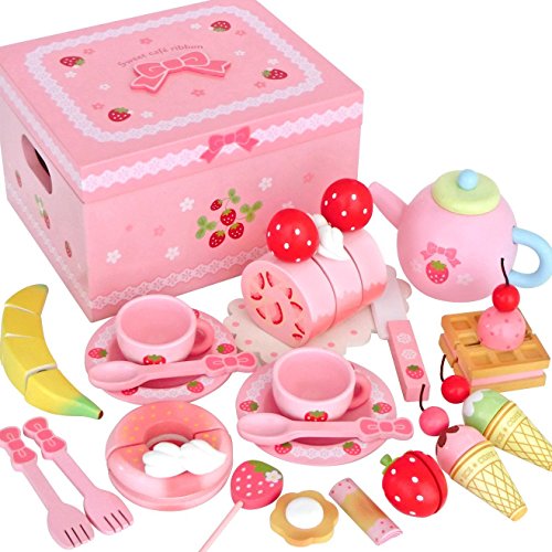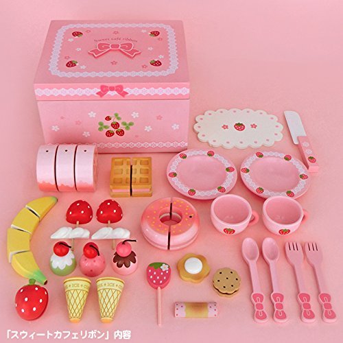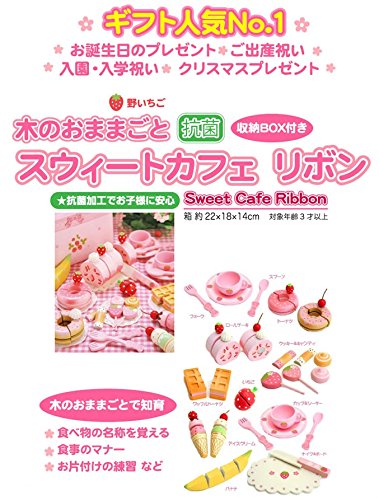 【 Alnair 】 木のおもちゃ 野いちごのおままごと 野苺 木のおままごと デラックスセット パーティー カフェ ケーキ 果物 食器 子供 誕生日 クリスマス お祝い 【 誕生日プレゼント 】 (スウィートカフェリボン)