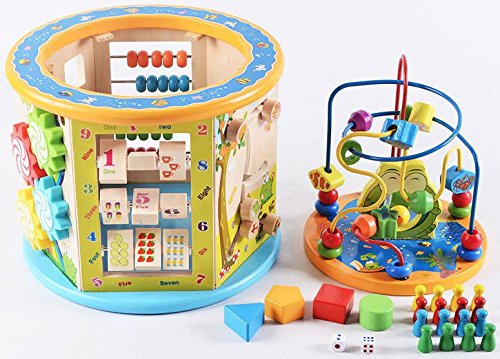 【 Alnair 】 8 と 1 プレイセンター 知育ボックス ビーズコースター ルーピング 迷路 キッズおもちゃ 木のおもちゃ 木製玩具 非常に素晴らしいギフト
