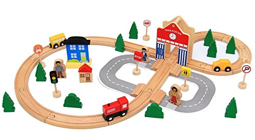 【 Alnair 】 木のおもちゃ 木製玩具 8の字セット 車 レール 車両 【送料無料】 (1)