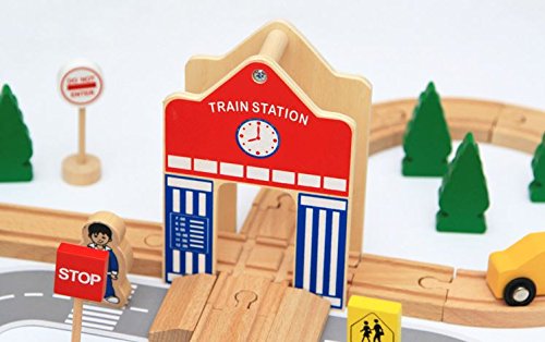 • 車両やレールはもちろん、駅や橋も木製で、懐かしいぬくもりの中にもモダンなデザインが取り入れられています。