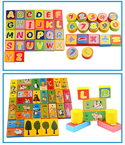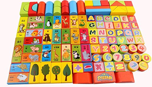 【 Alnair 】 積み木 知育玩具 積木 木製知育玩具 おもちゃ 子供おもちゃ 木製カラフルつみきセット 認知力 教育玩具 知恵おもちゃ 数字 英語 【 送料無料 】 (100PCS)