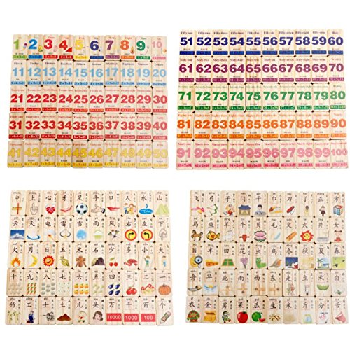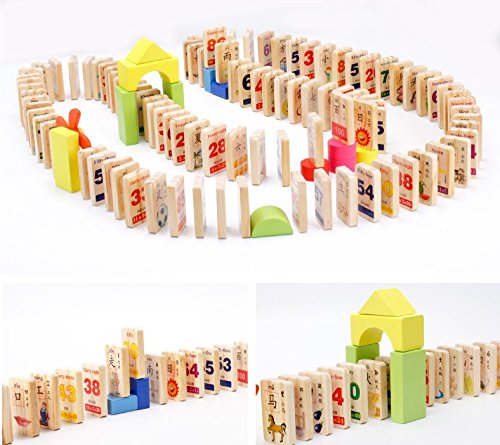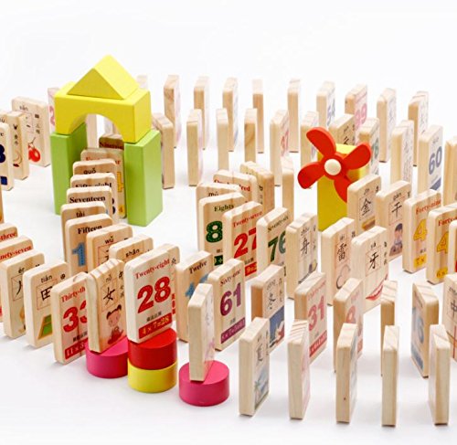 【 Alnair 】 ドミノ倒し ドミノ 木のおもちゃ 木製 おもちゃ 積み木 100PCS 知育玩具 漢字 算数 数字 【 送料無料 】