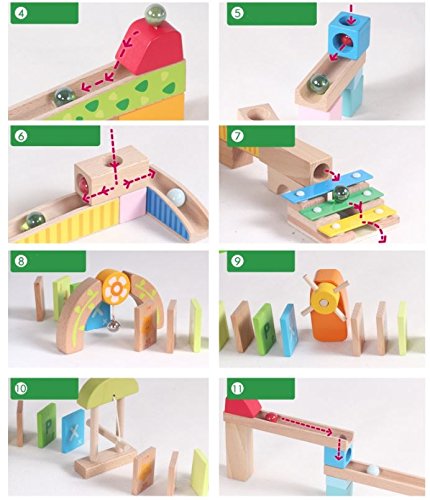 - そこを改善と試行錯誤を繰り返すうちに課題を克服、さらにレベルの高い様々な組み合わせを試して遊べます。「いろいろ工夫してやっとうまくいったな! 」という達成感を得ることができるでしょう。 ビー玉を転がした先に今度はドミノが!ビー玉転がしの他にもドミノへつながる2度楽しい木製玩具。ギミックも付いており、好き放題に作れるのでコースは無限大!