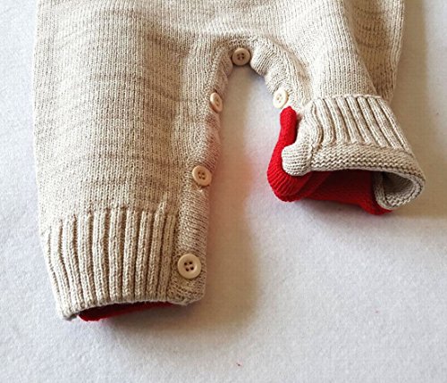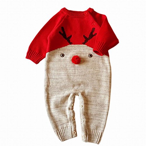 ベビーロンパース 新生児 ニット トナカイ 女の子 男の子 冬 防寒 セーター 着ぐるみ カバーオール コスチューム 赤ちゃん クリスマス (レッド, S)