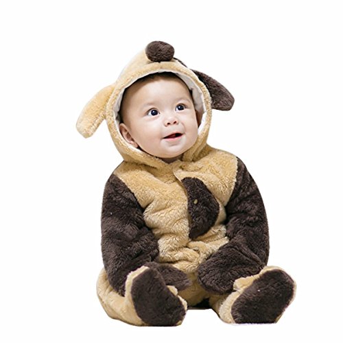 ベビー服 ロンパース 着ぐるみ カバーオール 肌に優しい フランネル素材 ベビー 仮装 コスチューム 赤ちゃん 防寒着 撮影 出産祝い (ブラウン, 73cm)