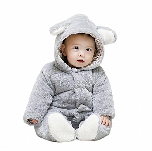 カバーオール ベビー 防寒 モコモコ 男女兼用 仮装 動物 コスチューム ベビーロンパース 冬 着ぐるみ 厚手 女の子 男の子 赤ちゃん (グレー, 90cm)