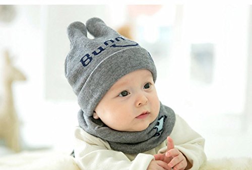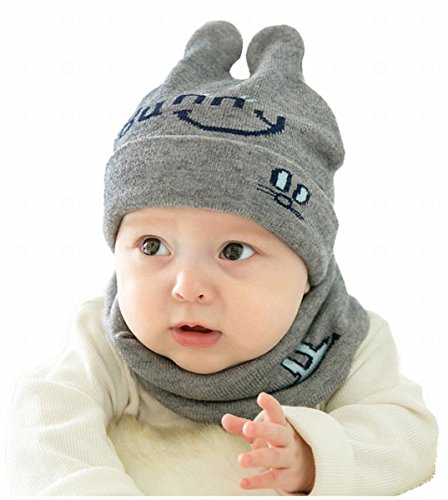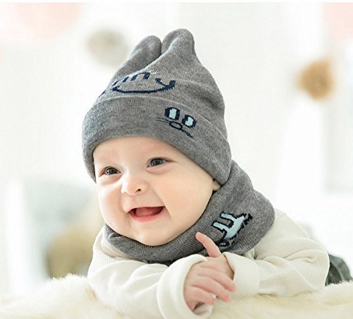 二点セット 帽子とマフラー ベビー 赤ちゃん 幼児 可愛い ニット帽子 男女兼用 幼児 春秋 保温 あったか 撮影用 記念撮影 フリント ネックウォーマー (グレー)
