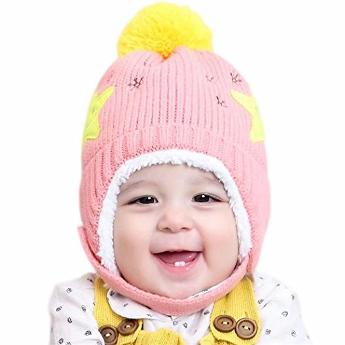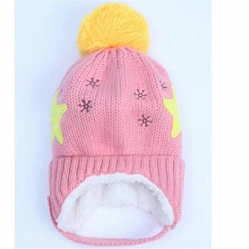 ニット帽子 キッズ あご紐 厚手 起毛 ポンポン付き 帽子 ベビ 新生児 可愛い 仮装 記念撮影 (ピンク)