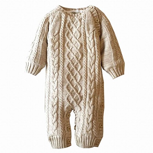 ベビー服 ニットロンパース 男の子 女の子 裏ボア カバーオール 子ども セーター 赤ちゃん 冬 長袖 無地 出産祝い 防寒 (ベージュ, M)