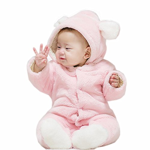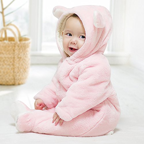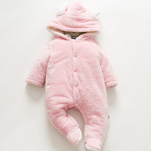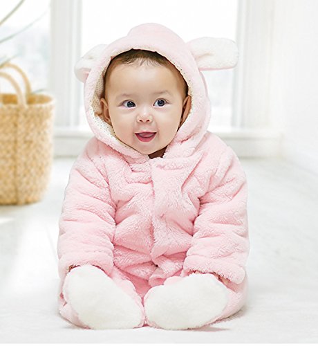 ベビーロンパース クマ 着ぐるみ カバーオール ベビー 防寒着 ボア モコモコ 前開き コスチューム フード付き 新生児 コットン (ウサギ, 73)